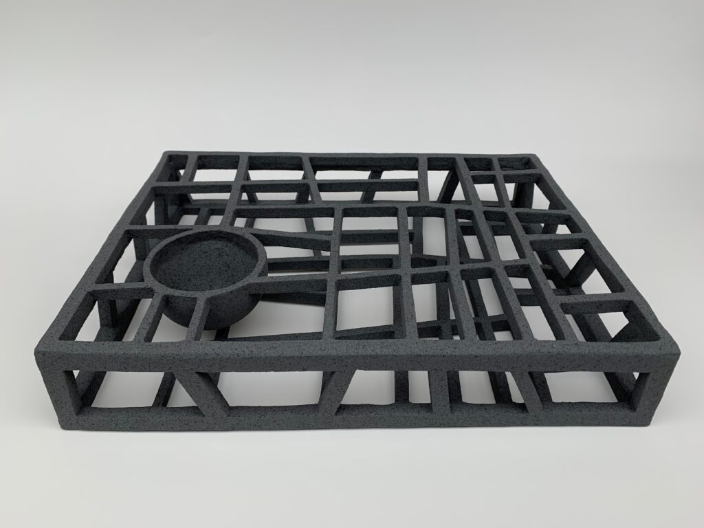 Raster met grijs Vlak, klei, 5,2 x 21,5 x 27,5 cm.