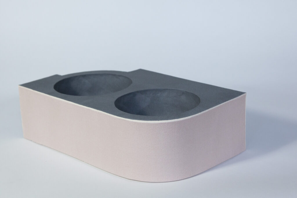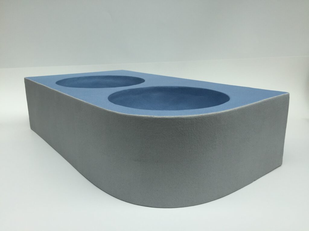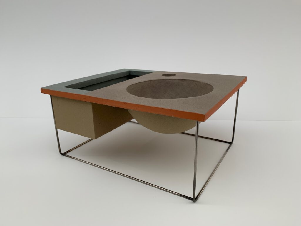 Element met twee Kommen, Klei, 12,5 x 43 x 25,5 cm.